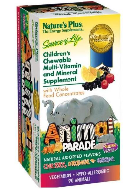 Source of Life® Animal Parade® – Assorted Chewables ( viên kẹo ngậm hình thú , 3 vị trái cây- Cam, cherry, và nho )